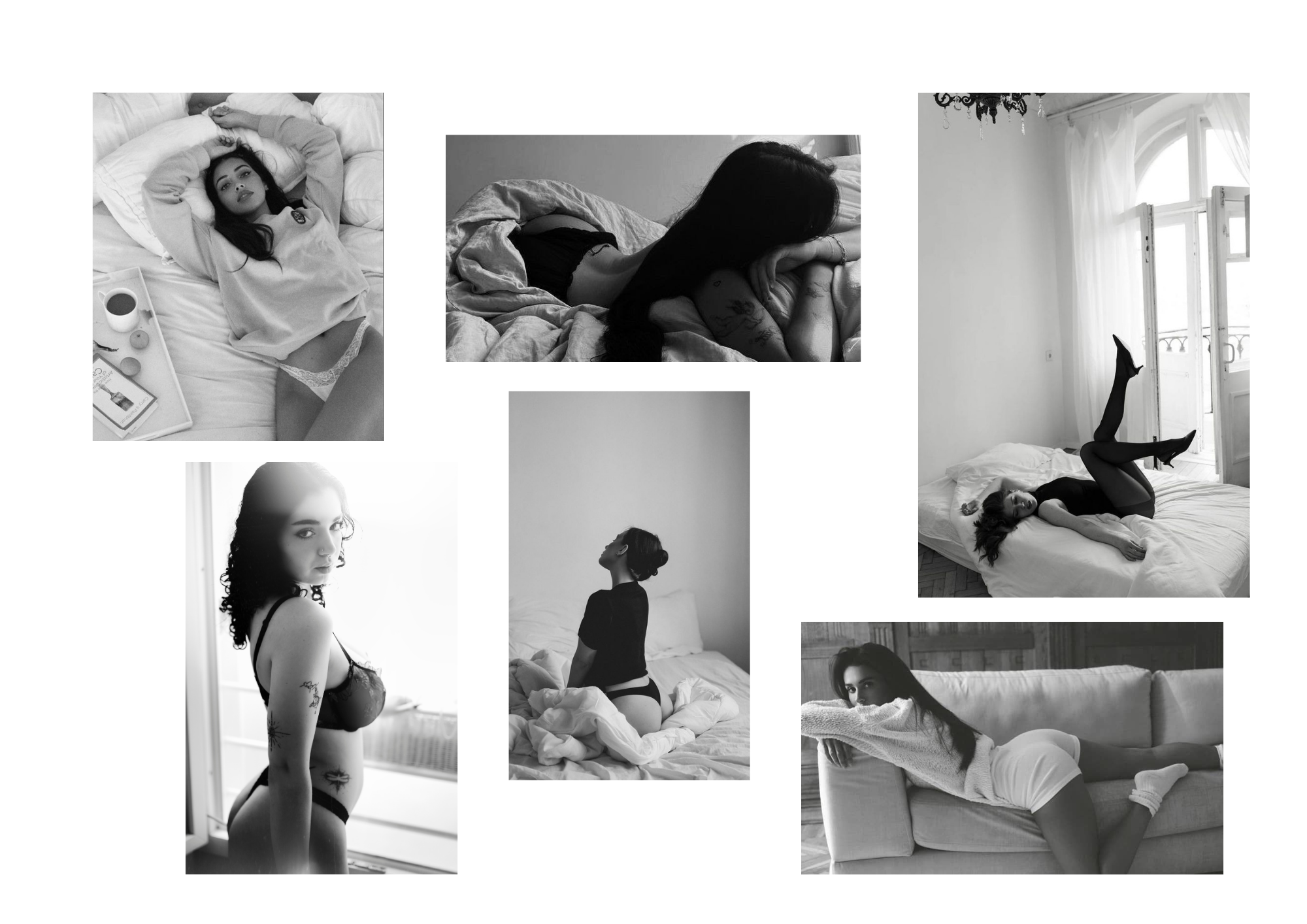 Ici, on joue avec les courbes, les drapés, la douceur d’un tissu contre la peau. Les matières deviennent des alliées : coton froissé, satin délicat, chemise entrouverte, couverture comme accessoire.